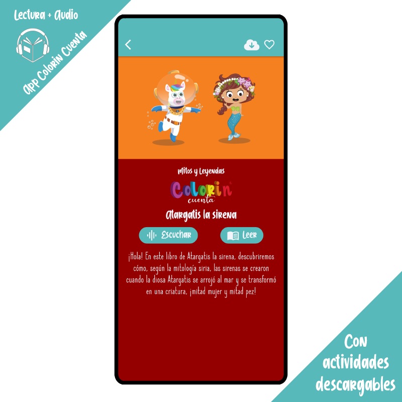 ¡Hola! soy Colorin el Unicornio, en Colorin cuenta Atargatis la sirena, descubriremos cómo, según la mitología siria, las sirenas se crearon cuando la diosa Atargatis se arrojó al mar y se transformó en una criatura, ¡mitad mujer y mitad pez!