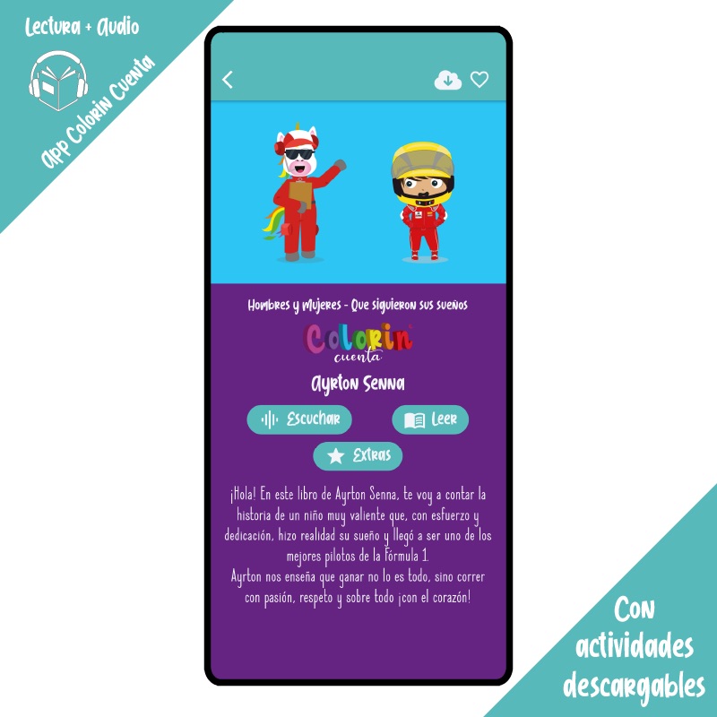 ¡Hola! Soy Colorin el Unicornio, en Colorin cuenta Ayrton Senna, te voy a contar la historia de un niño muy valiente que, con esfuerzo y dedicación, hizo realidad su sueño y llegó a ser uno de los mejores pilotos de la Fórmula 1. Ayrton nos enseña que ganar no lo es todo, sino correr con pasión, respeto y sobre todo ¡con el corazón!