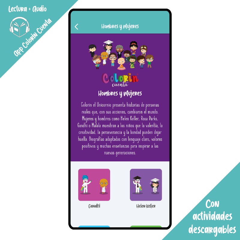 ¡Hola! Soy Colorin el Unicornio, y en esta colección de más de 30 historias te voy a contar la historia de hombres y mujeres que lograron cosas extraordinarias. Personas que soñaron en grande, superaron dificultades y cambiaron el mundo con su talento, su esfuerzo y su valentía.