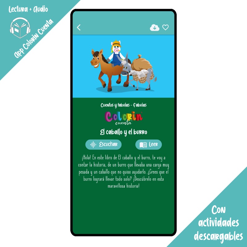 ¡Hola! Soy Colorin el Unicornio, en este minilibro de Colorin cuenta El caballo y el burro, te voy a contar la historia, de un burro que llevaba una carga muy pesada y un caballo que no quiso ayudarlo. ¿Crees que el burro logrará llevar todo solo? ¡Descúbrelo en esta maravillosa historia!