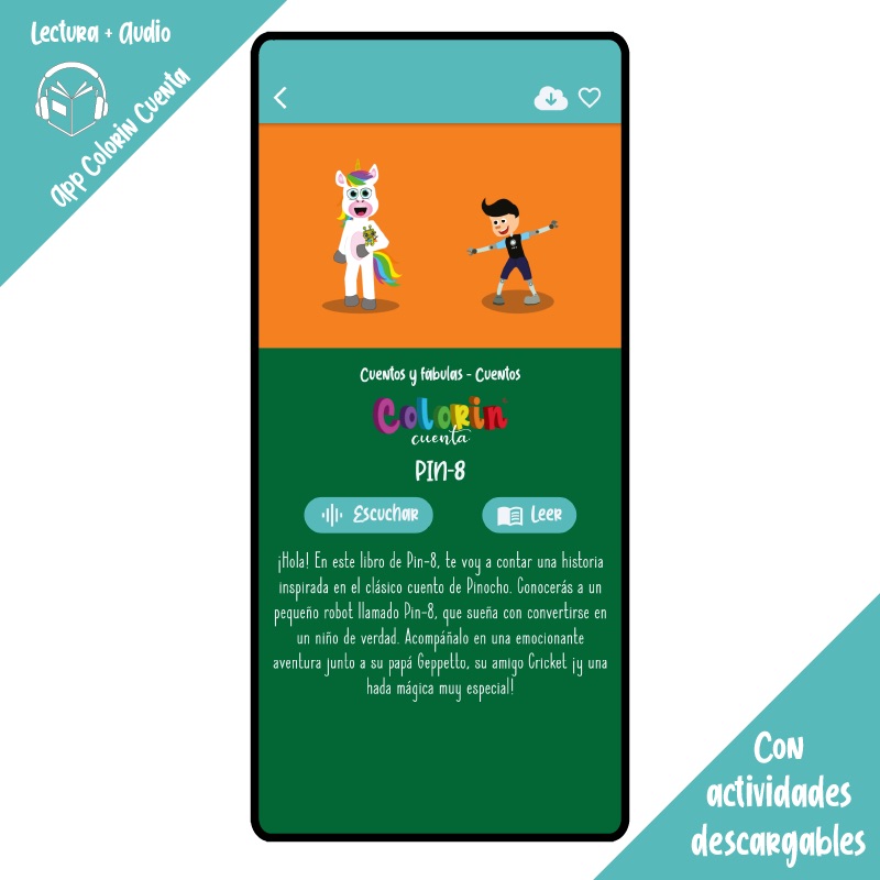 Colorin cuenta lo moderniza con la historia de Pin-8, un pequeño robot que vivirá una gran aventura para convertirse en un niño de verdad. Junto a su papá Geppetto, su fiel amigo Cricket y un hada mágica, descubrirá el valor de la honestidad, la amistad y el amor.