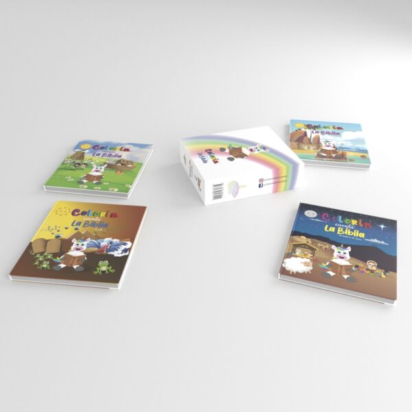 El set de colección de los cuatro libros para niños de la serie Colorin cuenta la Biblia. Una Biblia para niños ilustrada y contada por Colorin el unicornio que contiene los libros Colorin cuenta la Biblia – Génesis -, Colorin cuenta la Biblia – Éxodo -, Colorin cuenta la Biblia – Cuentos de la Biblia – y Colorin cuenta la Biblia – La historia de Jesús -.