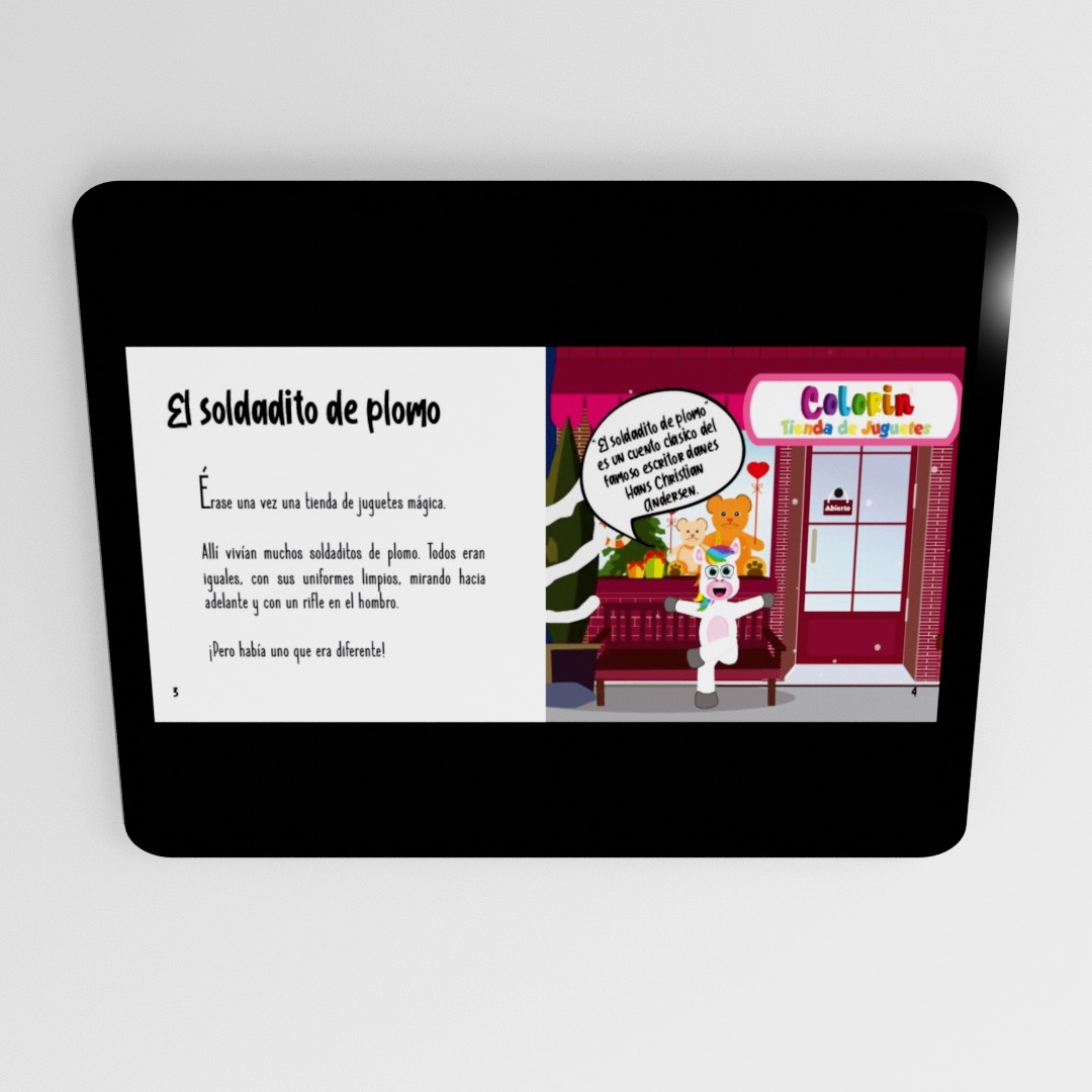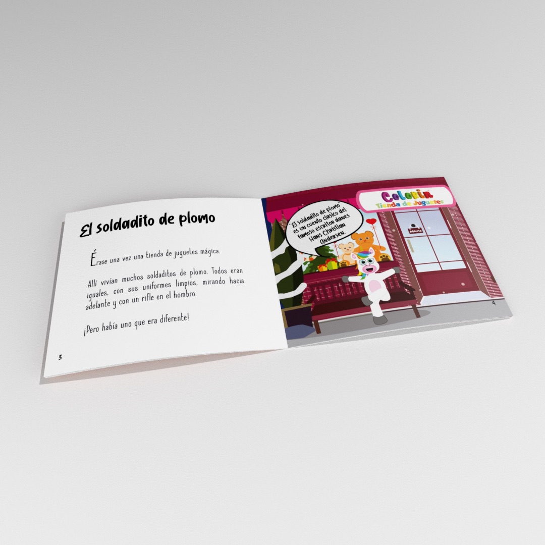 ¡Hola! Soy Colorin el Unicornio, en este libro de Colorin cuenta El soldadito de plomo, te contaré la historia de un valiente soldadito de plomo con una sola pierna y un gran corazón. Un día, cae por la ventana y comienza una aventura llena de desafíos.